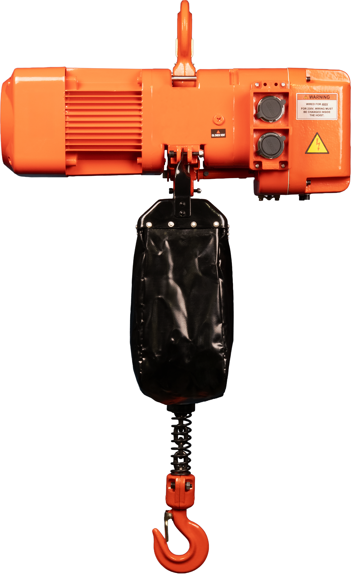 Dual Voltage All 3 phase hoists come standard from the factory wired for 460v power supply. This can easily be adjusted to 230v.