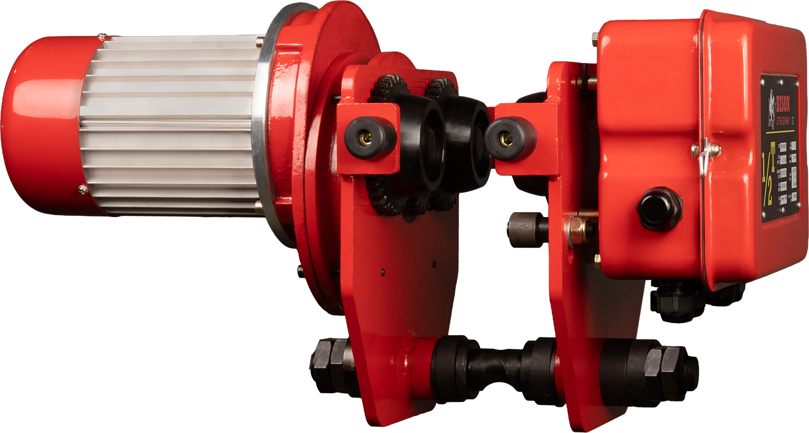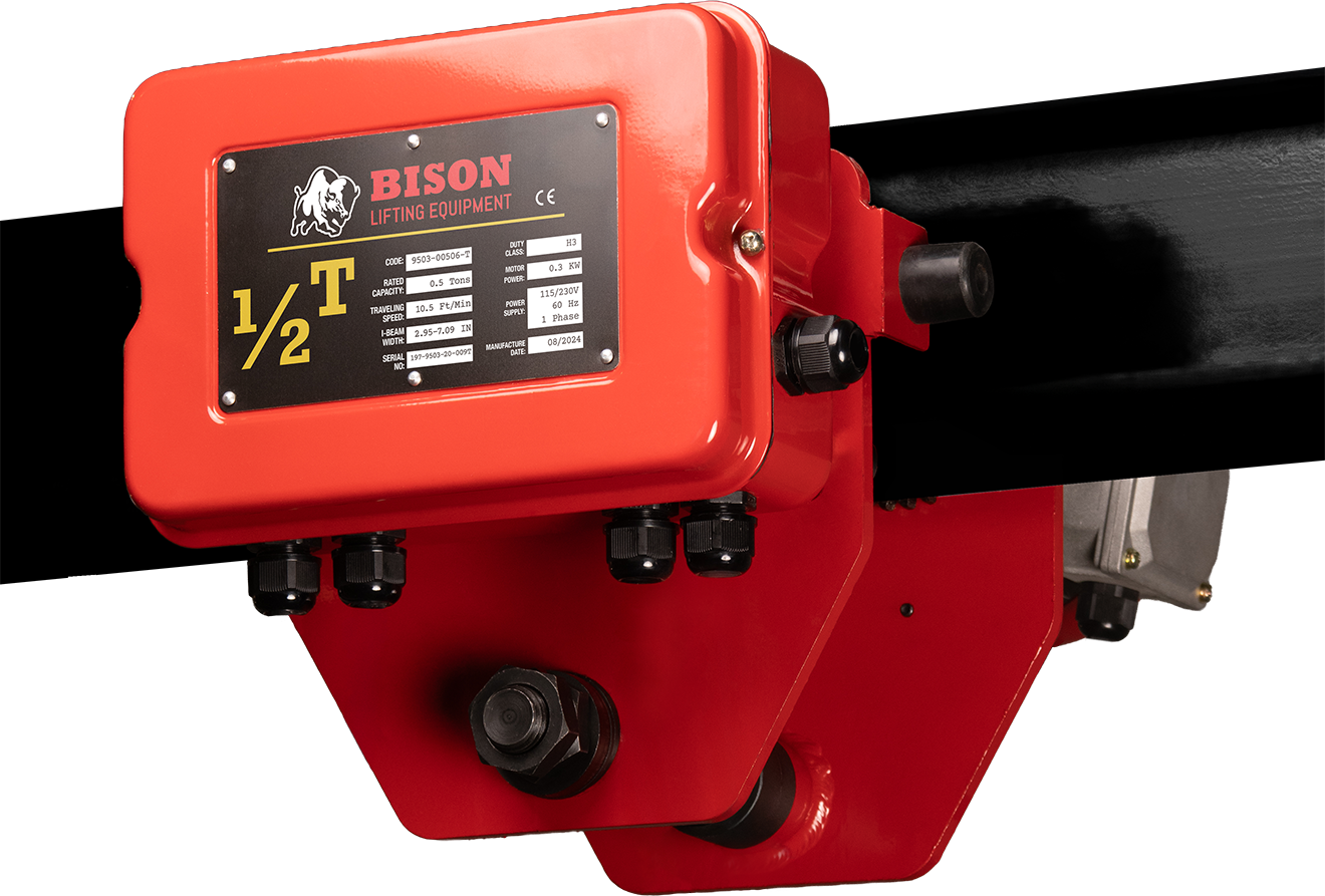 The Bison sinlge phase motorized trolleys are universal to all hoists. The trolley can be controlled indepently through its own pendant crontroller. Only hoists with 24V control can be wired into the motorized trolley to be operated all through one pendant.