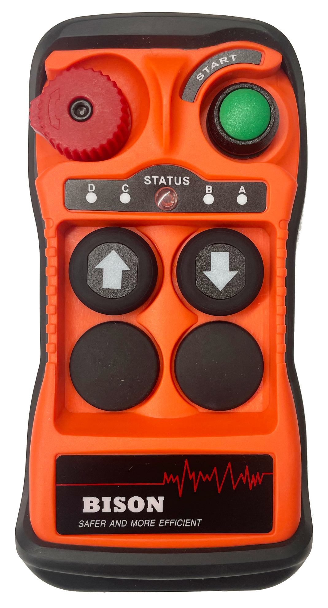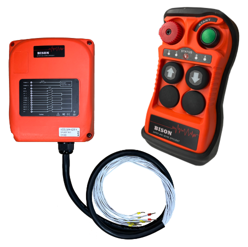 The Bison Q200 radio remote kit allows an operator to control their hoist from a single wireless controller. The kit comes with everything necessary for installation, including 2 handheld transmitters + 2 protective rubber cases, 1 receiver with cable end, anti- vibration mount, and a built-in Audible power indicator.