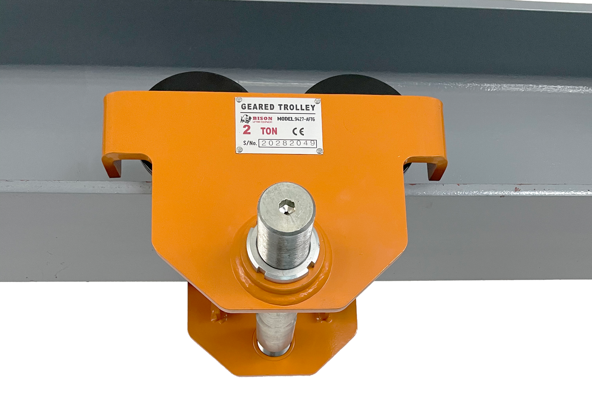 Threaded shaft with Allen bit setting. Makes opening and closing the trolley to fit a beam ultra quick and convenient. Using a drill fitted with an Allen bit, simply work the trolley open and closed. Removes the need for collars/ spacers. This design provides best in class headroom and accommodates wider beam flanges.