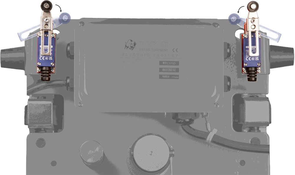 The Trolley Limit Switches are inteded for mounting on either side of the three-phas emotorized trolley as pictured below